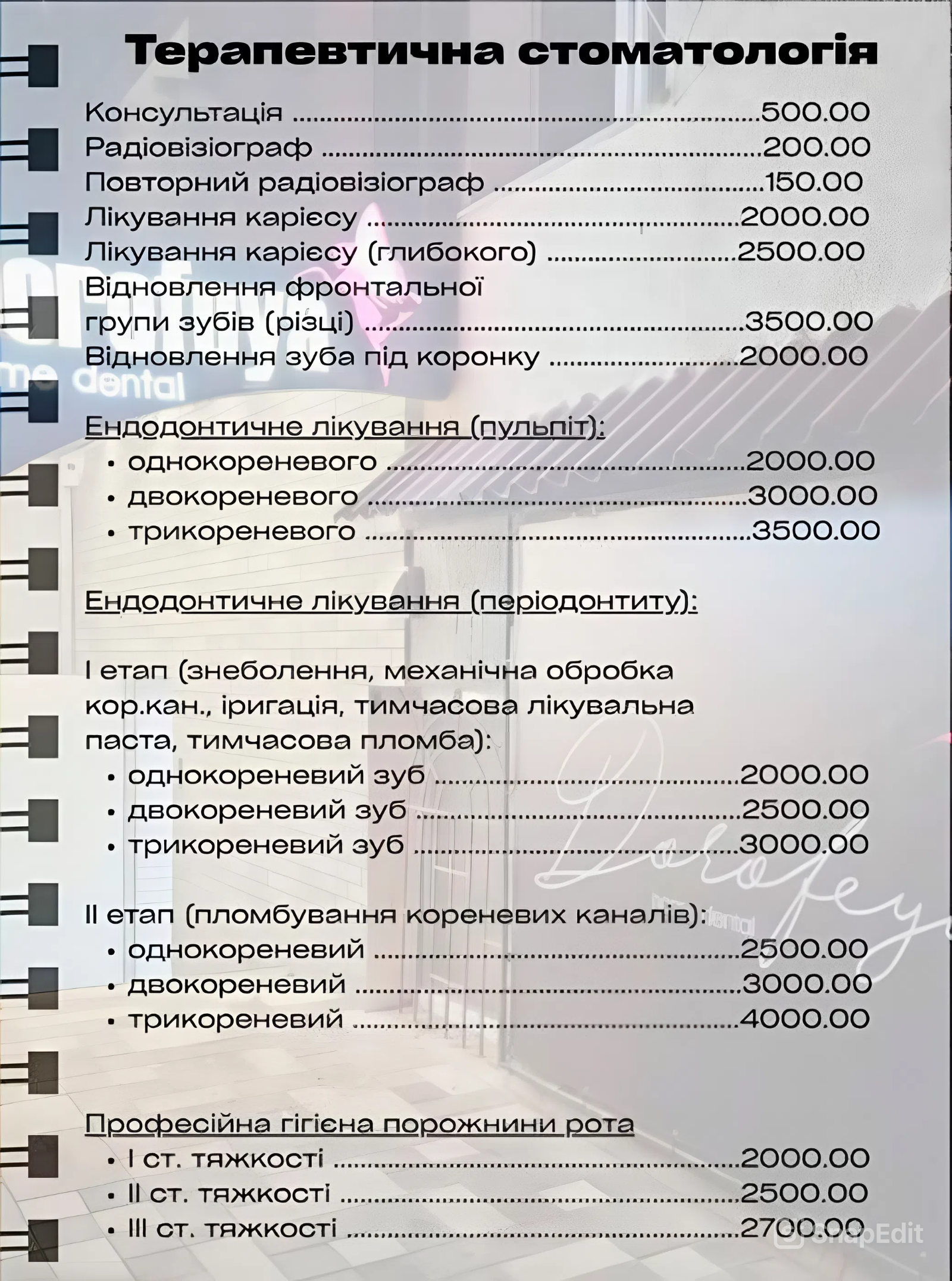 Актуальний прайс-лист (ціни) на стоматологічні послуги у Запоріжжі